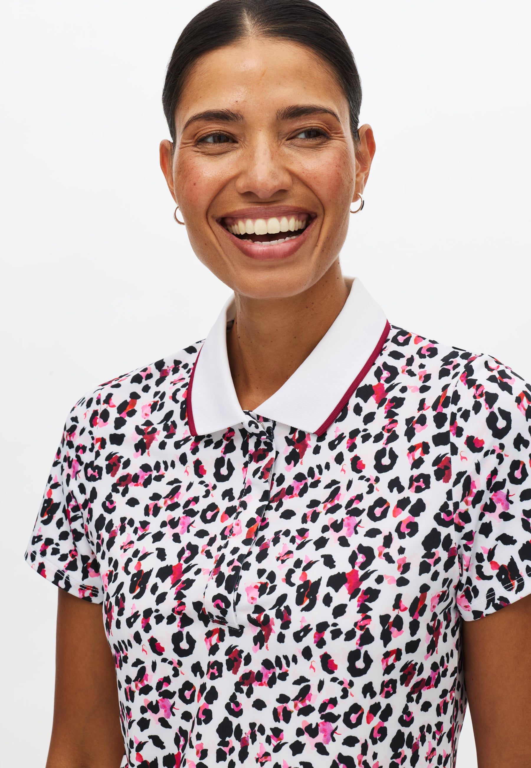 Röhnisch DENI Poloshirt Imprimé léopard rose bordeaux en détail...